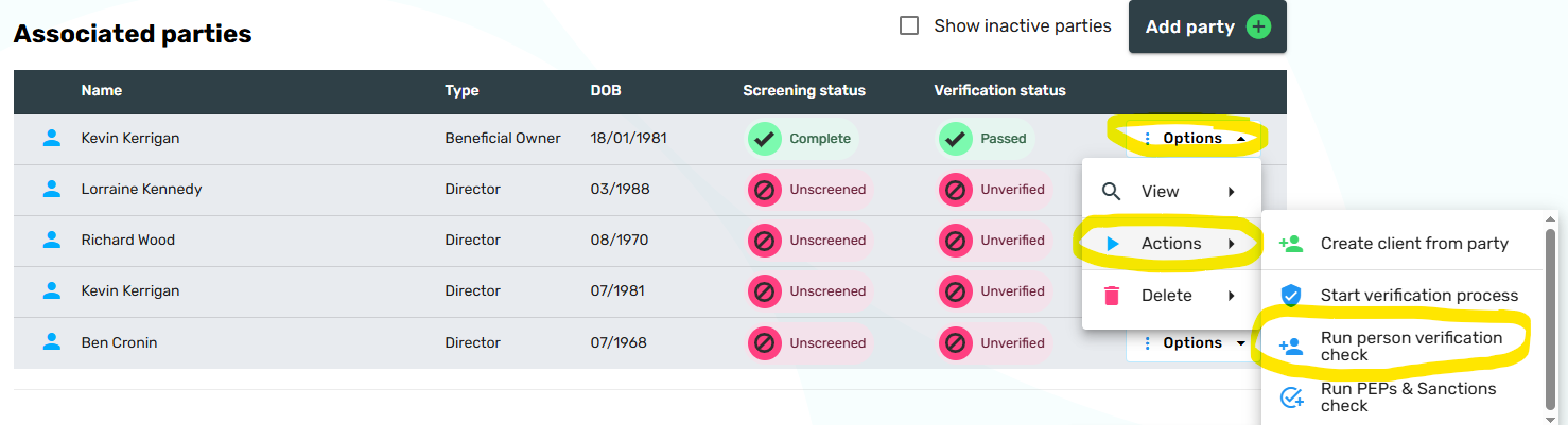 - Person Verification: This new feature allows you to conduct advanced electronic AML checks for individuals against independent external sources such as the electoral register and credit bureaus.