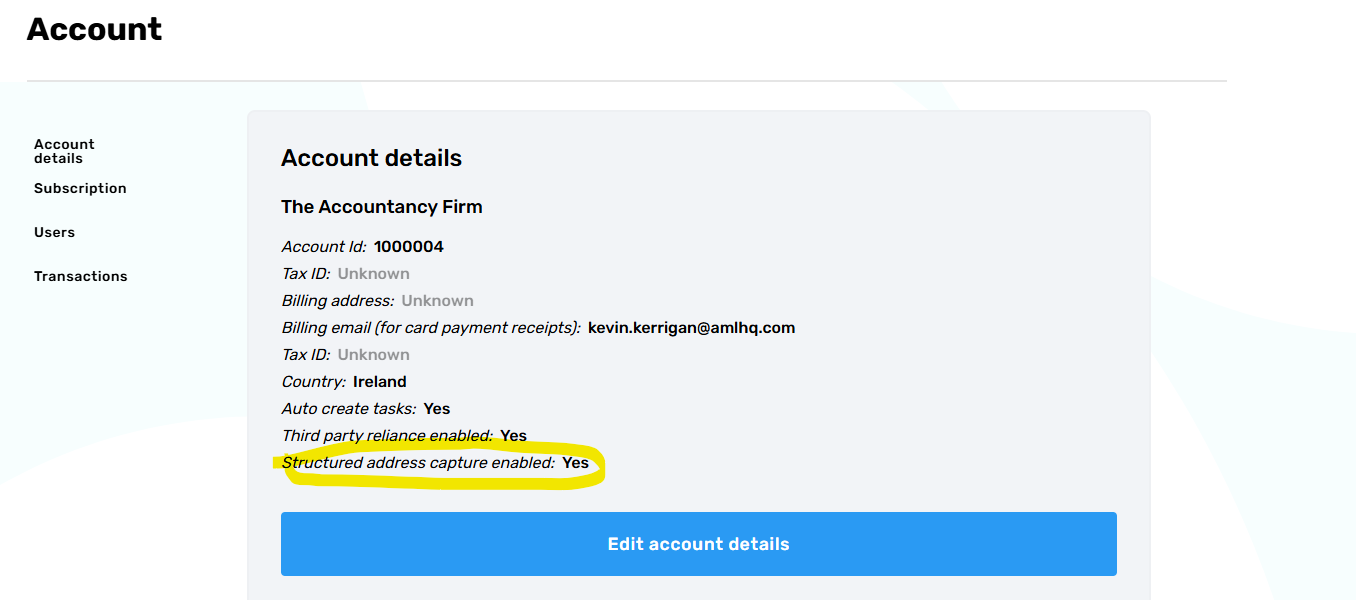As part of this release, we have added the ability for your clients to confirm their residential address via a convenient lookup service within the identity verification process. This address lookup is not enabled by default and we recommend that you enable this within your account settings (see the below image).